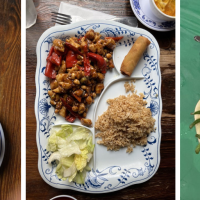Stir-fried mixed vegetables wrapped in thin pancakes. Comes with choice of brown or white rice.